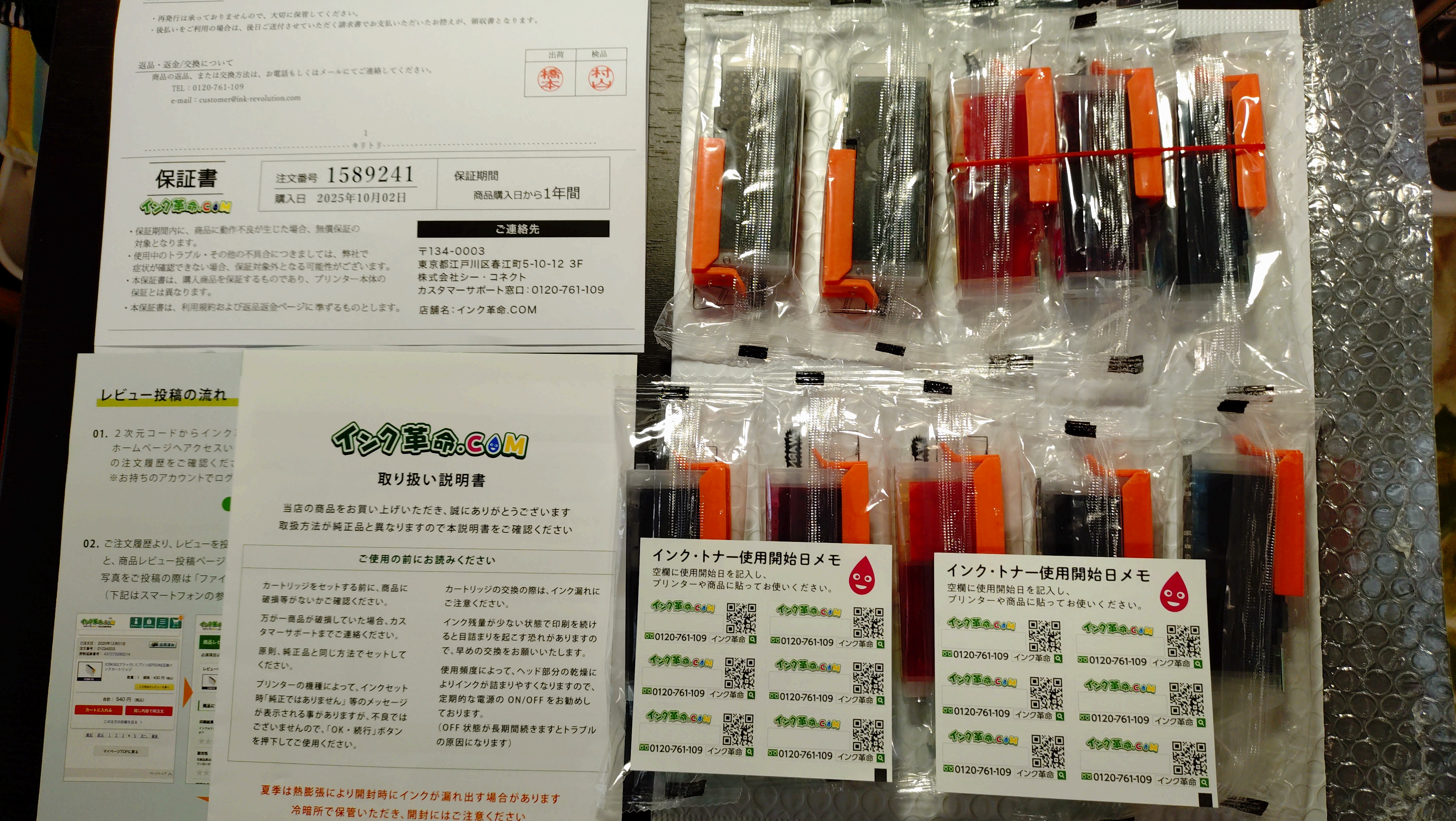 IC4CL76 + PXMB3 (顔料4色セット 大容量+メンテナンスボックス) エプソン[Epson]互換インクカートリッジをご注文頂きました。 | 兵庫県 | 最短お届け 12月10日 午前中までに配達予定 |